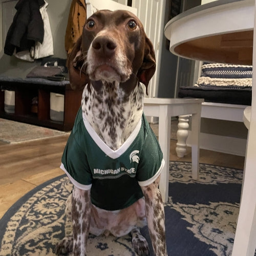 Zala loves to eat (more than Brooke). The rumor is, Aaron and Michelle sold their vacuum. Zala has filled the void and never allows a crumb to remain on the floor, anywhere! 🐶
